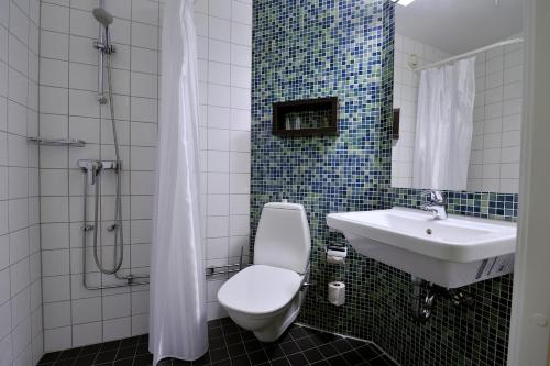Detta rum har en platt-tv, ett skrivbord och eget badrum med dusch. Sängarna är 80 cm breda.